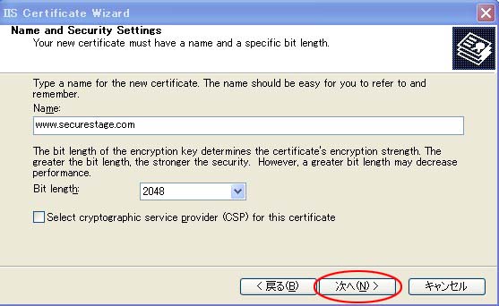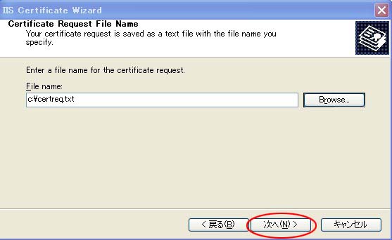 - 作成するCSRのファイル名を [ ファイル名 ] の枠に入力してください。