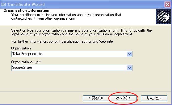 Organization 会社名・組織名を入力してください。 Taka Enterprise Ltd Organization Unit 部署名を入力してください。 Technology City or Locality 市区町村を入力してください。 Nakano-ku State or Province 都道府県を入力してください。 Tokyo