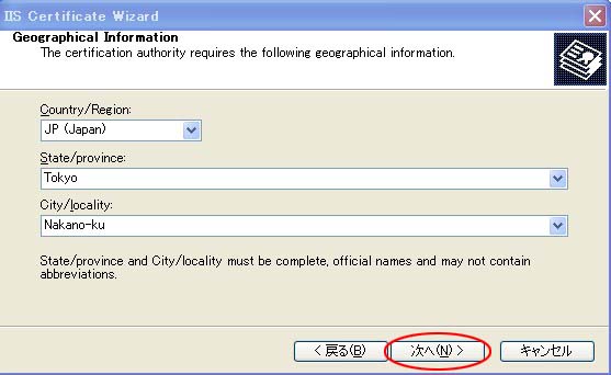 日本は「JP」です。JP - CSRファイルの保存先を任意に指定してください。