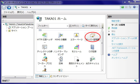 - 真ん中のメニュー(機能ビュー)から [ サーバー証明書 ] をクリックしてください。