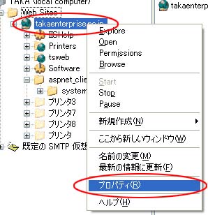 - [ (仮想サイト名)のプロパティ ]が表示されます。