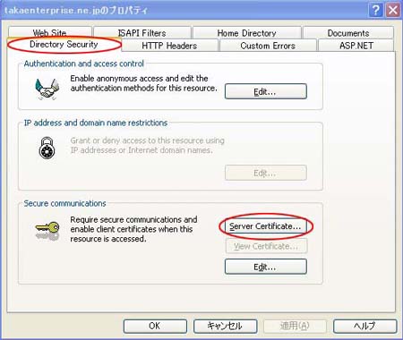 - [ ディレクトリセキュリティ ] タブをクリックしてください。