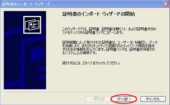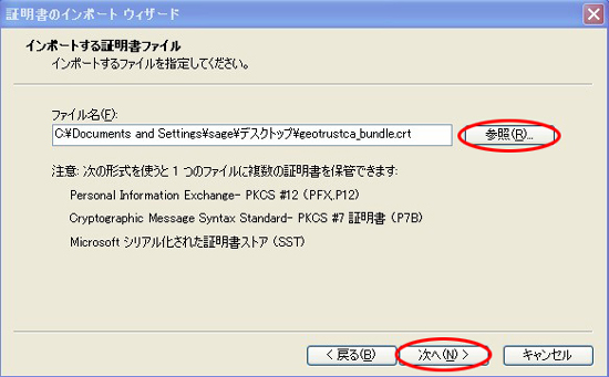 b) 上記のファイルを以下の画面から選択していただき、 「次へ」をクリックしてください。
