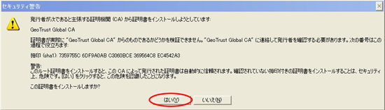 a) 以下のセキュリティ警告が表示した場合は「はい」をクリックしてください。(警告が出ない場合もございます。2回表示する場合もございます。2回表示した場合は両方に「はい」をクリックしてください。)