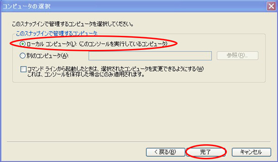a) 「ローカルコンピュータ」を選択し「完了」を押してください。