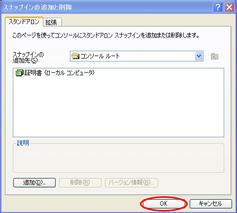 a) 一番下の「証明書」を選択して「追加」ボタンをクリックしてください。